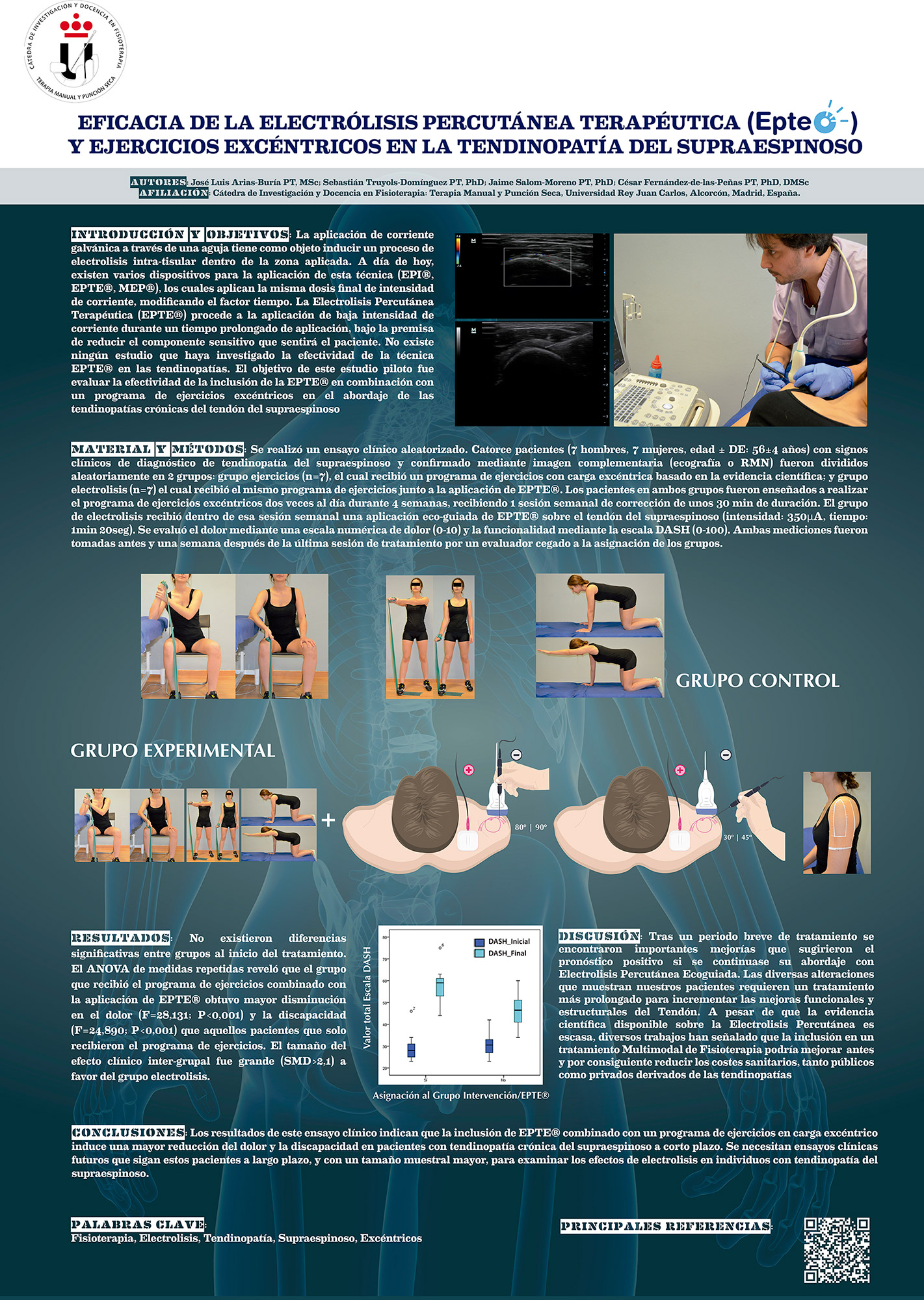 En su intervención, señaló el funcionamiento de la electrólisis percutánea y su aplicación a la fisioterapia. EPTE permite incidir directamente sobre el tendón dañado con una baja corriente galvánicaque no produce dolor y cuyos efectos beneficiosos se empiezan a notarse pasadas unas horas. EPTE permite recuperarse de las lesiones en menos tiempo. Jose Luis Arias adelantó las conclusiones del 1er estudio referente a la eficacia de la Electrólisis Percutánea Terapéutica (EPTE®) y ejercicios excéntricos en la tendinopatía del supraespinoso, músculo situado en la zona superior del hombro.